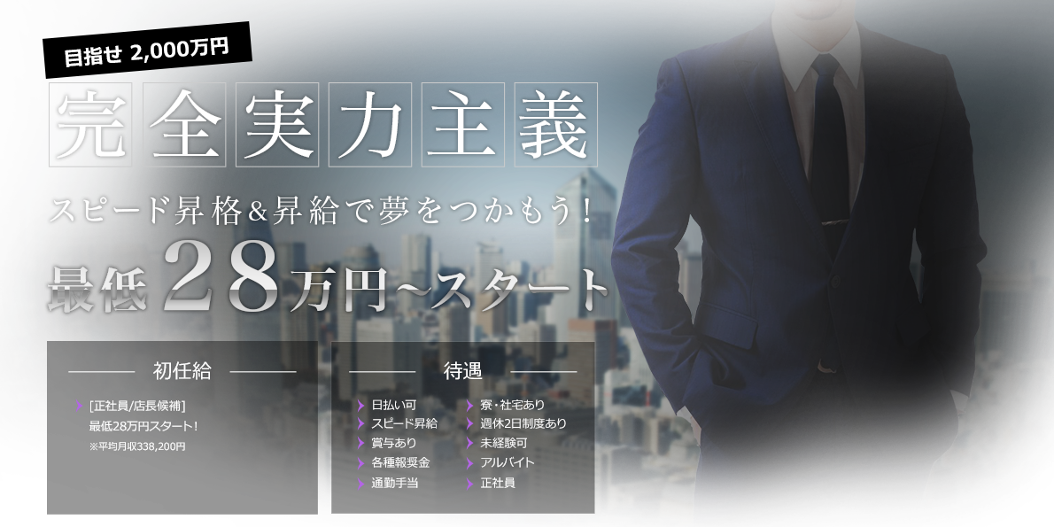 もちろん休みも週休2日制度を導入している為、一般の会社と変わらず健全に働いて頂けます。年功序列なんてものはありません。